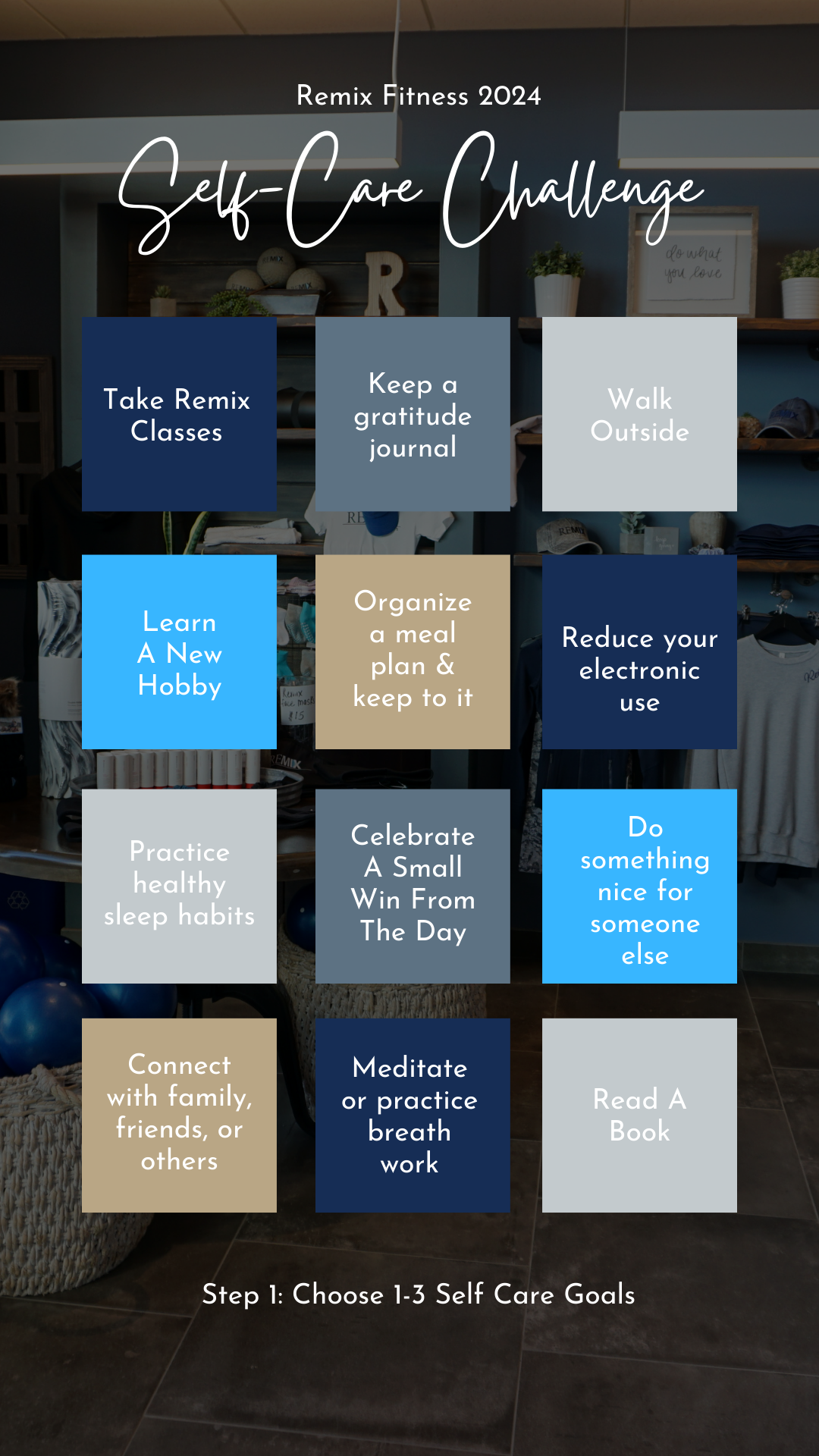 Step 1: Choose 1-3 self care goals for the month of February